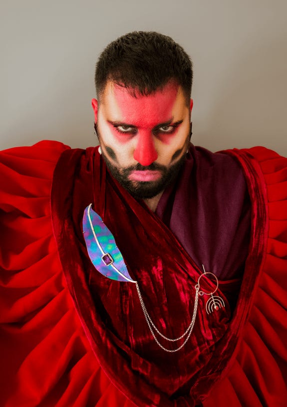 The fibula’s ancient path— from a masculine Roman utility to a feminine North African talisman— is retraced here through a queer Jewish body with his gaze fixed upon Jewish futurity. Avra’Am is, in this sense, a Zionist fetish— a term I have coined to contextualise my production of exquisite objects that bind body and symbol. In Jewish hands, it becomes a decolonial tool of survival and self-empowerment: beauty turned into a weapon of sovereignty, devotion, and reclamation.